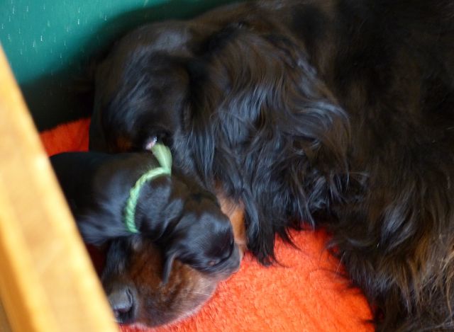 Abends in der Wurfkiste finden sie es aber auch gemütlich:-) |