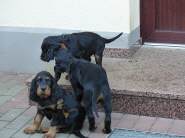 Der Bube mit dem beige-schwarzen Halsband: Der Kleine - zu Beginn wog er einiges weniger als die dicken Geschwister, hat aber sehr gut aufgeholt und ist sehr menschenbezogen und verspielt |