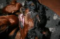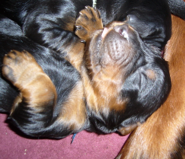 Tag 31 und 32: Es wird gespielt bis die kleinen Setter in den Tiefschlaf fallen... Und gerne auch mit Tante Aby... |