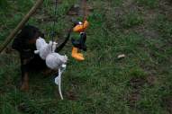 Tag 50: endlich ist es einmal trocken... Also: Spiel, Spaß und Spannung... Es wird an Fellen und Spielzeug gezergelt, Eva hat mit der Reizangel gerabeitet usw. Und wenn es umschichtig ins Haus geht lernen wir alle Geräusche des täglichen Lebens und die Stubenreinheit kennen... |