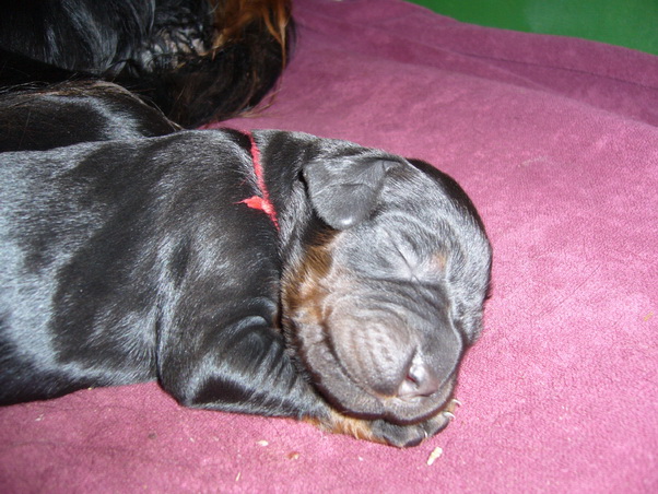Tag 11 - die Äuglein öffnen sich langsam... Es wird gekrabbelt und gekuschelt - und Aby betreibt aktiv Welpenpflege (ein echter Putzfreak) |
