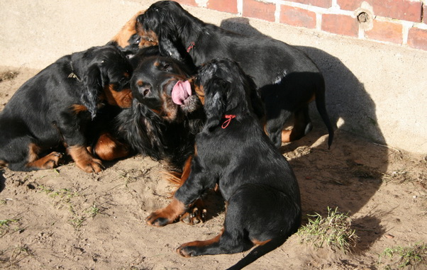 Tag 27: Die Welpen freuen sich über die Besucher, den ersten Ausflug nach Draußen, reichlich Futter und weniger an dem Fotoshooting (langweilig...) |