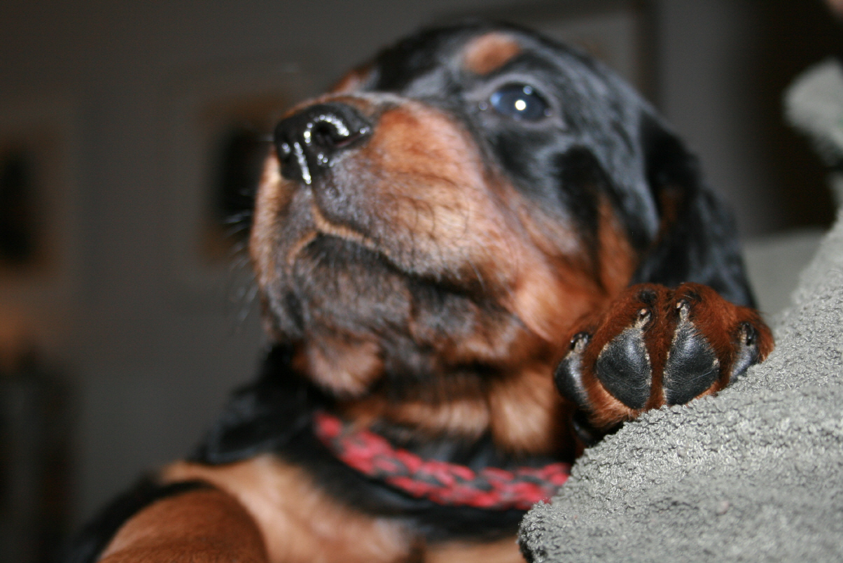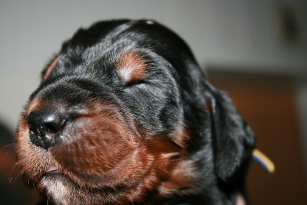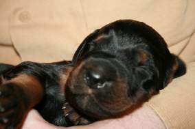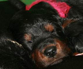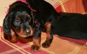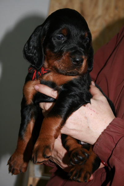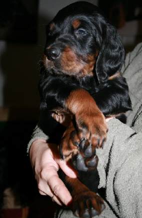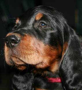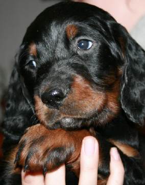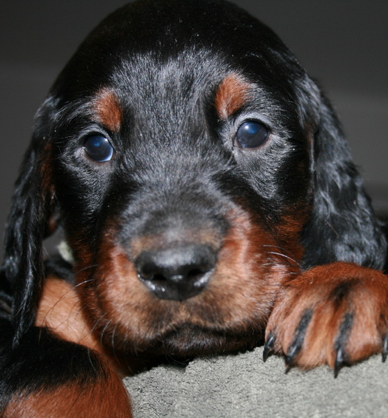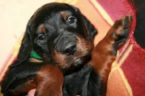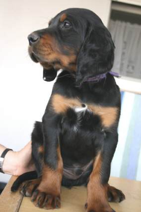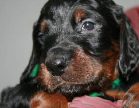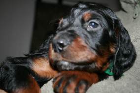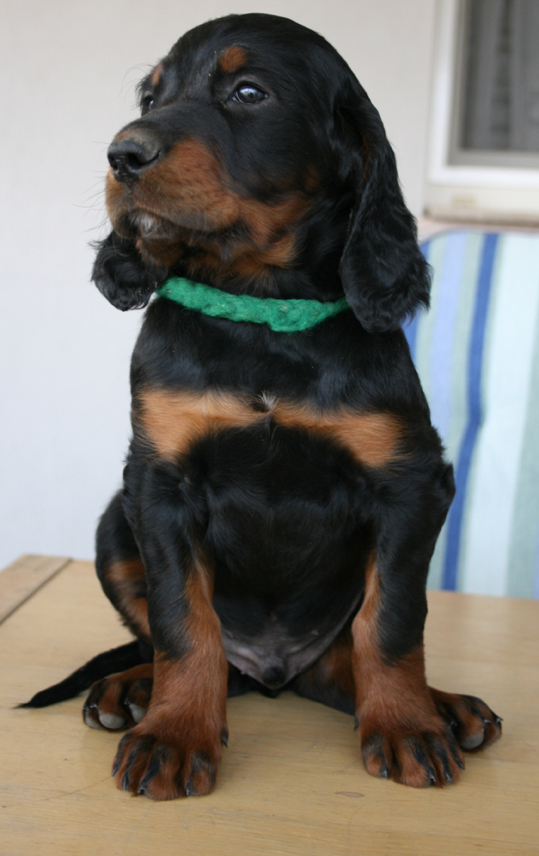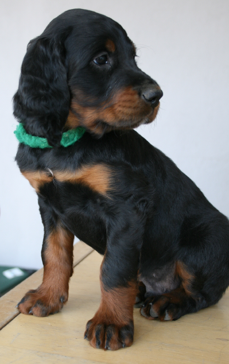 Hallo! Ich bin Scotland King´s Duncan, der Rüde mit dem grünen Wollhalsbändchen! Ich bin sehr, sehr neugierig und aufgeschlossen, absolut verspielt und finde Menschen einfach nur toll - Hauptsache sie beschäftigen sich mit mir!!! Ja: Ich bin ein aufgeweckter Junge und werde ein eleganter Gordon-Rüde werden!!! |