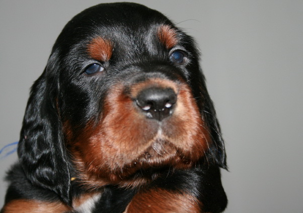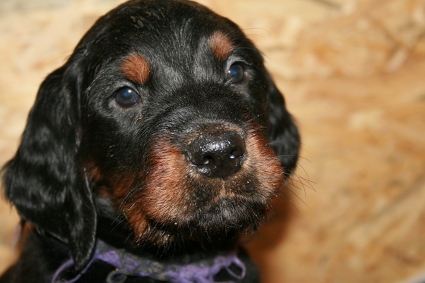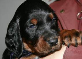 Hallo! Ich bin Scotland King´s Dexter, der Rüde mit dem schwarz-lilanen Halsband! Ich bin wunderschön, keck und selbstbewußt und werde sicherlich Leben in die Bude bringen :-) - natürlich nur im Positiven.... Auf jedem Fall werde ich sicherlich einmal ein ganz stattlicher Gordon-Setter Rüde mit viel Liebe und vielen lustigen Idden... |