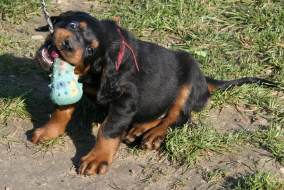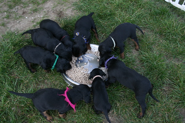 Hallo! Ich bin der Rüde mit dem grünen Halsband - ich bin ein verschmuster, neugieriger und fröhlicher Junge. Ich habe einen sehr dunklen Tan und werde später ein gaaanz edler Rassevertreter. |