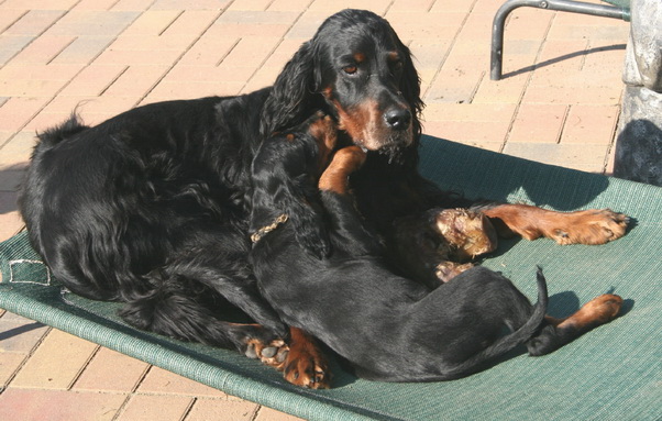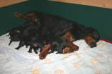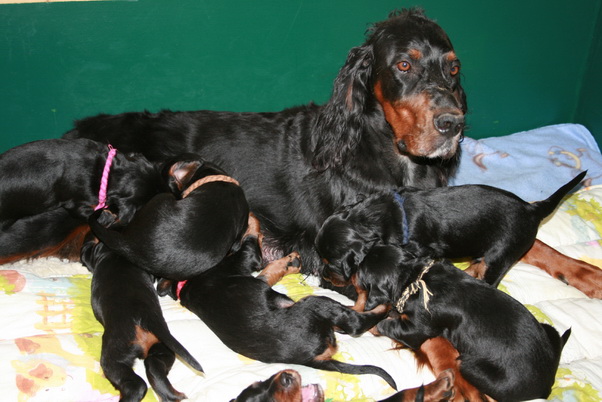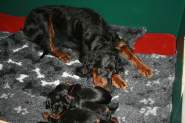04.08.2011: Heute hat Aby von 2 Uhr in der früh an 4 Jungs und 6 Mädels das Leben geschenkt. Aby hat schon jetzt sehr gut Milch und kümmert sich wunderbare um die Mini-Gordies. Hier die ersten Eindrücke: