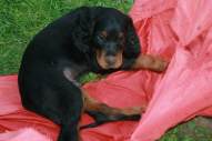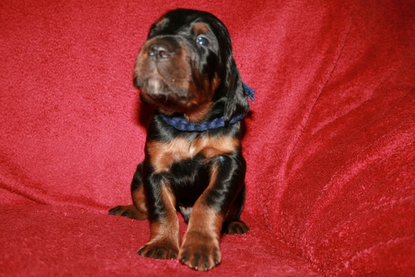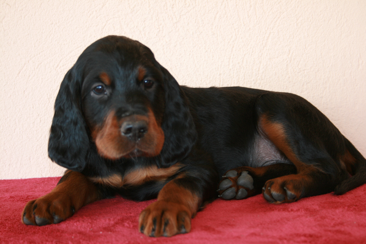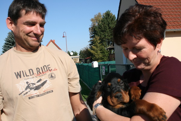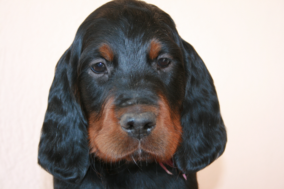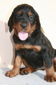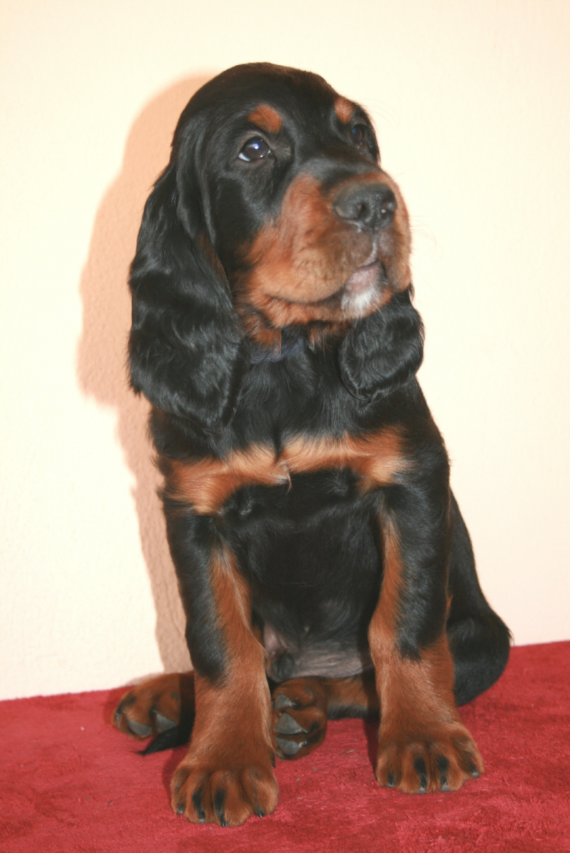 Hi! Ich bin das Mädel mit dem orange-weißen Halsbändchen und bin eine sehr kräftige und aktive junge Gordon-Dame - ich bin sehr unternehmungslustig und finde Menschen genial... |