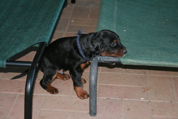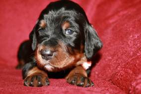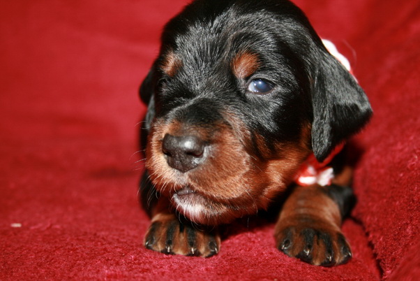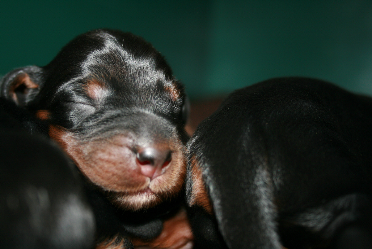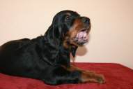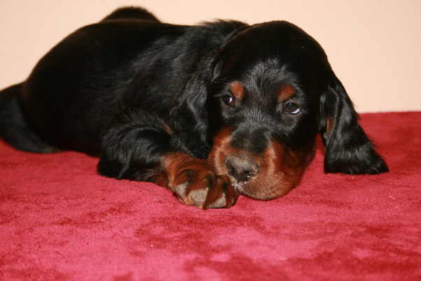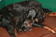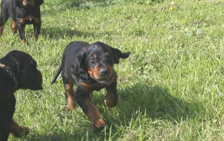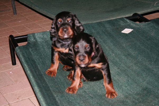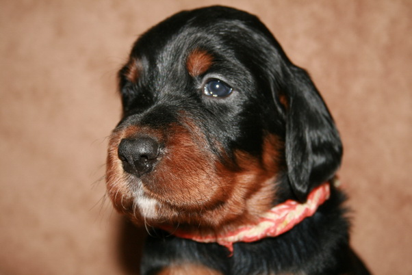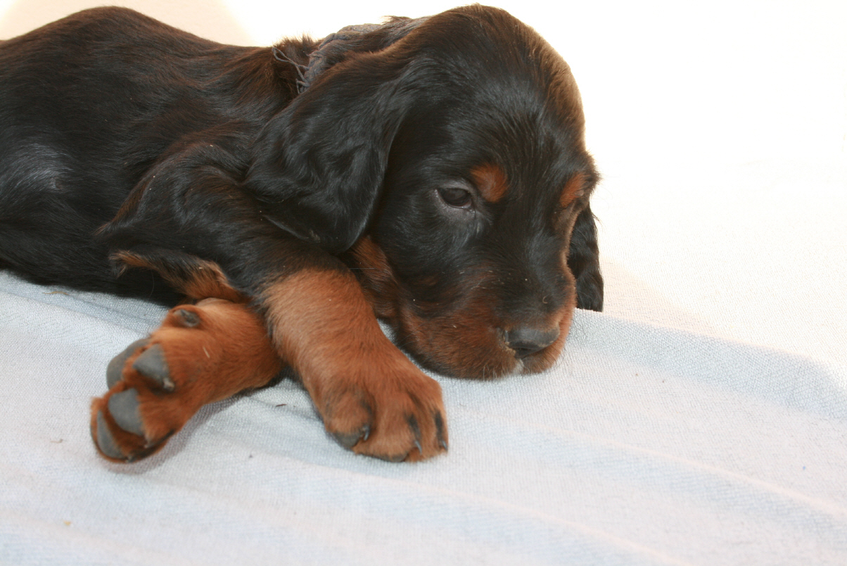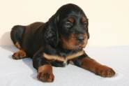 Hi! Ich bin das Mädel mit dem orange-weißen Halsbändchen und bin eine sehr kräftige und aktive junge Gordon-Dame - ich bin sehr unternehmungslustig und finde Menschen genial... |