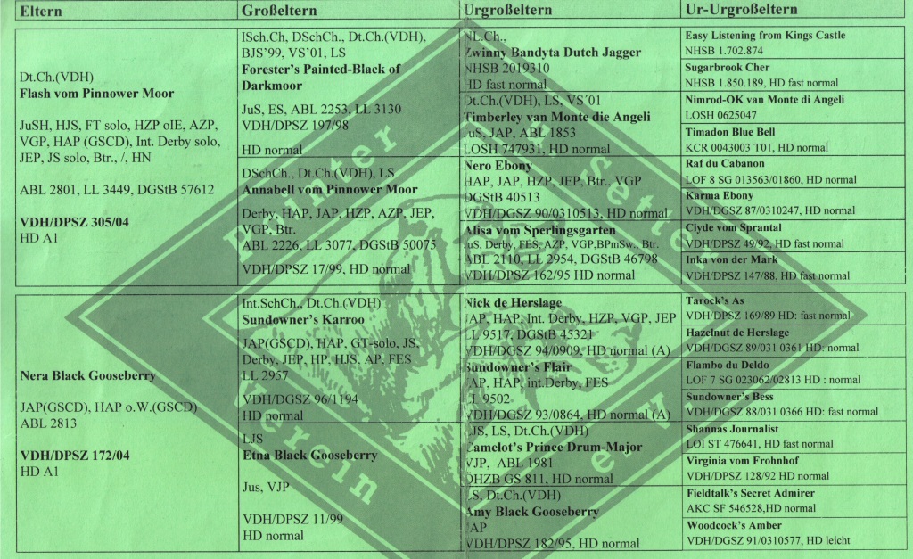 Deutscher Prüfungschampion (VfPuS) Deutscher Suchenchampion (VfPuS) Deutscher Prüfungschampion (GSCD) Scotland King´s Coleen |