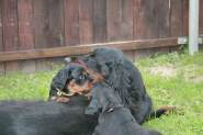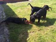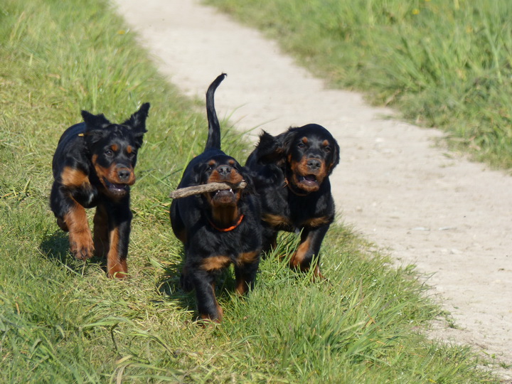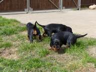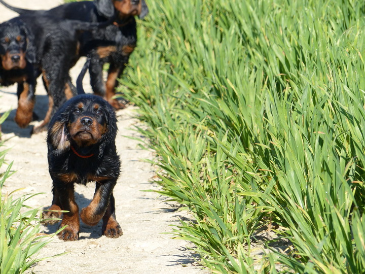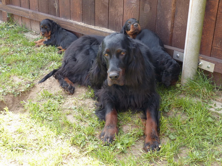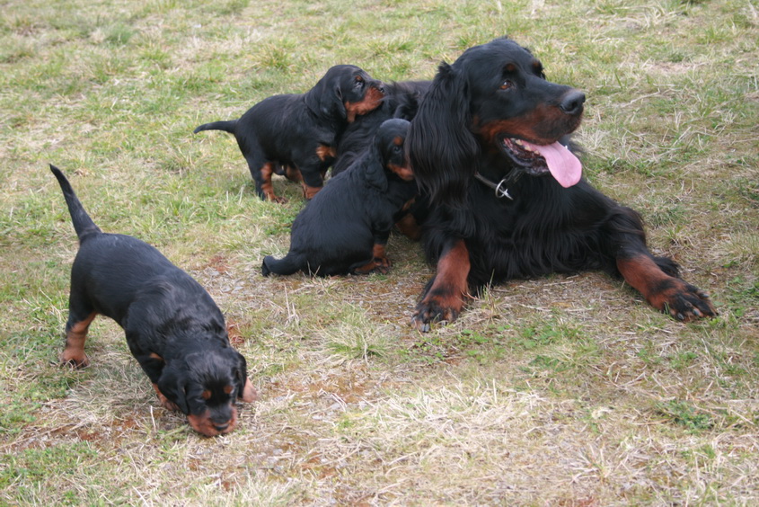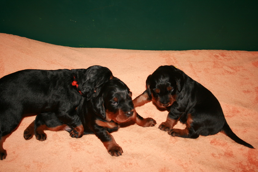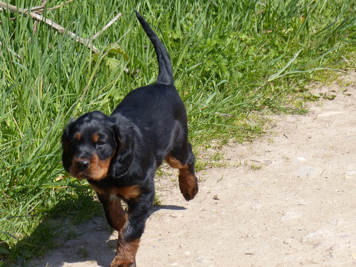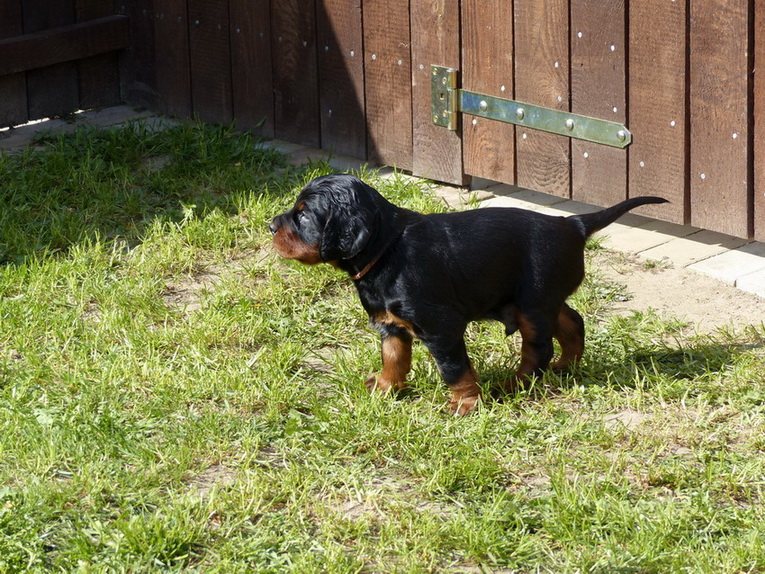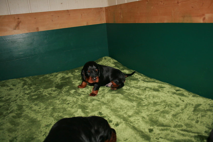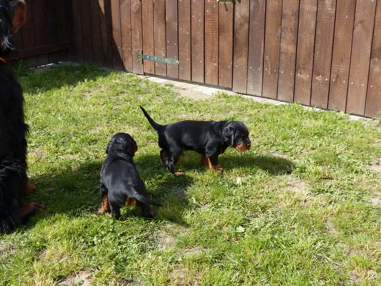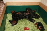 16.04.2016: Impressionen von der kleinen Familie aus den letzten Tagen - die Kleinen entwickeln sich prächtig und es ist wunderbar ihnen bei der Zunahme von Koordination und Reaktion und ihren Entdeckungstouren zuzusehen. Sie haben schon einige Ausflüge unternommen, u.a. ins Fotostudio, zum Tierarzt und ins Revier. Autofahren macht ihnen gar nichts mehr aus, selbst ohne Mama. Sie erkunden gerne alles, mögen aber nicht gerne im Welpenauslauf "weggesperrt sein". Trocken und Sonne ziehen sie nassem Untergrund und Regen vor - aber wer tut das nicht :-)?