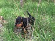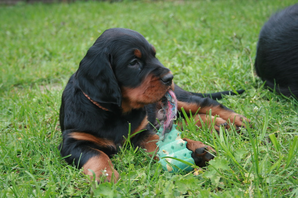 Nera - die kleine Entdeckerin lässt sich auch von der "wilden Nala" die Butter nicht vom Brot nehmen :-). Mittlerweile haben die beiden Geschwister 500g bzw. 1 kg mehr als sie, aber das ficht sie nicht an... Und apportieren kann sie auch schon:-) |