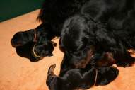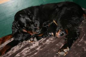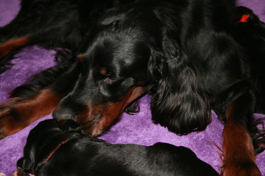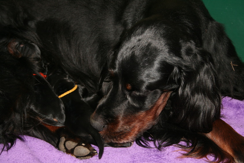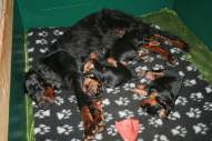 Wurfkiste ist langweilig - aber da sind die Zwerge auch nur noch zum Schlafen... Und dann finden sie es auch sehr gemütlich, vor allem wenn Mama Coleen dazu kommt... |