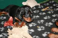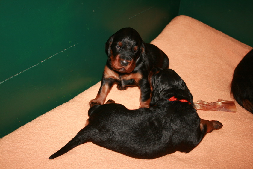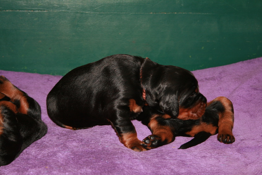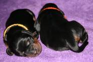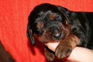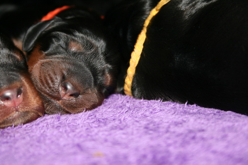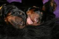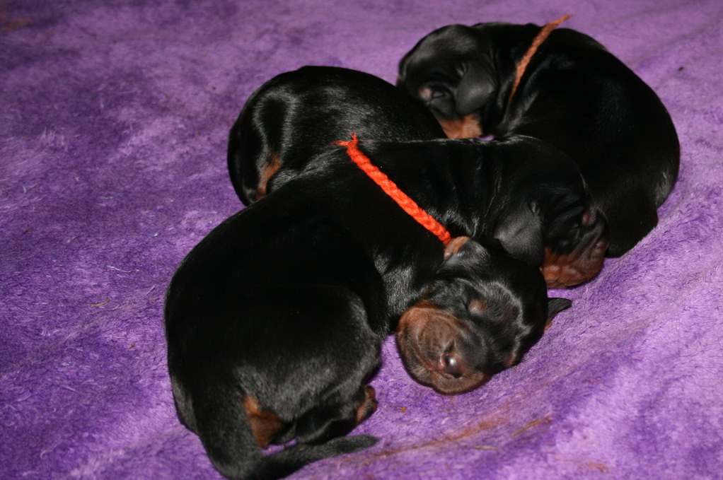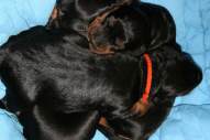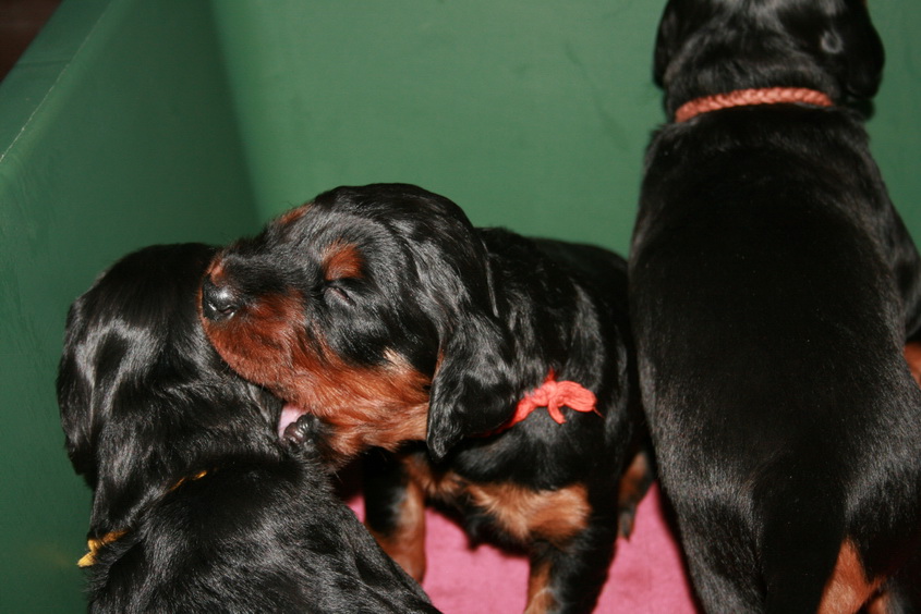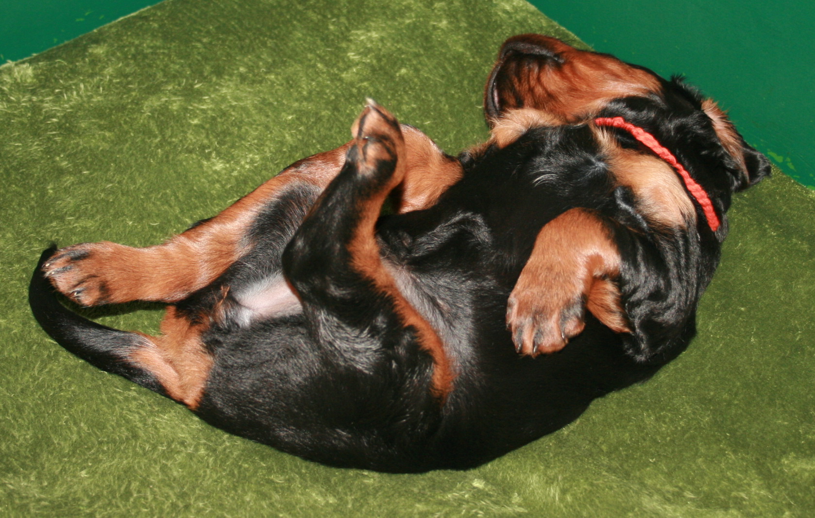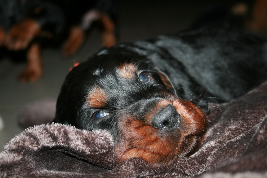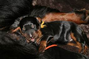 Tag 11-14 der N-Kinder: Es tut sich viel - jeden Tag gehen die Augen ein Stückchen weiter auf, die versuche die dicken Körperchen auf die Beinchen zu bekommen werden häufiger. Durch Aby weiß ich, das es keinen Grund zur Sorge gibt - auch dicke (um nicht gar zu sagen fette) Welpen lernen irgendwann laufen :-)...