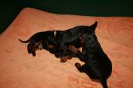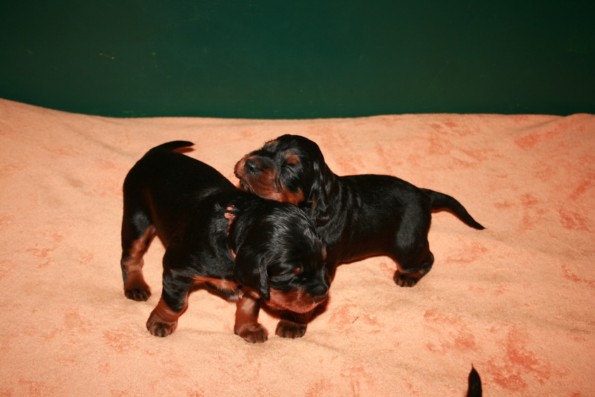 06.05.2016: Nun sind die Kinder 8 Wochen alt. Heute steht die nächste Impfung auf dem Programm und die Blutentnahme für die PRA-Testung sowie das Tätowieren. Sie werden das sicher so locker nehmen, wie mit vier Wochen die Frühimpfung und das Chipen. Und natürlich gibt es endlich wieder aktuelle Fotos von den Zwergen: