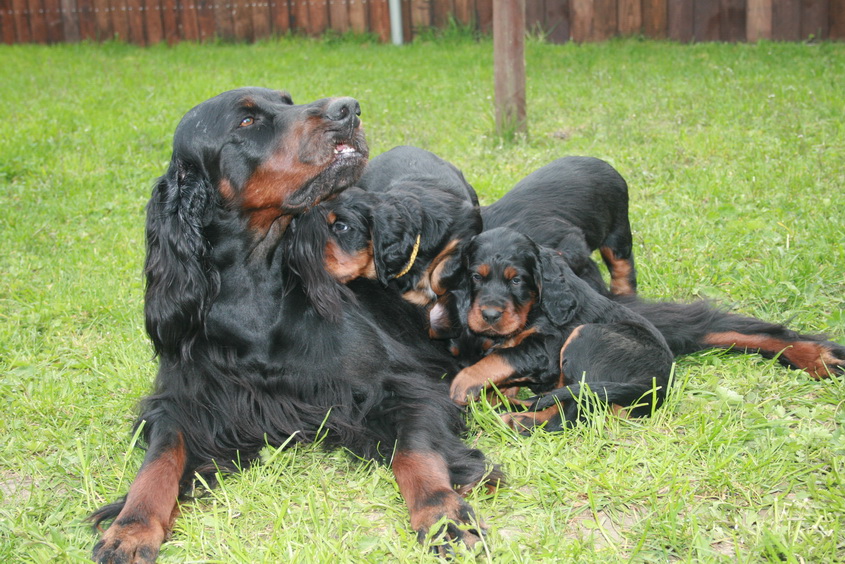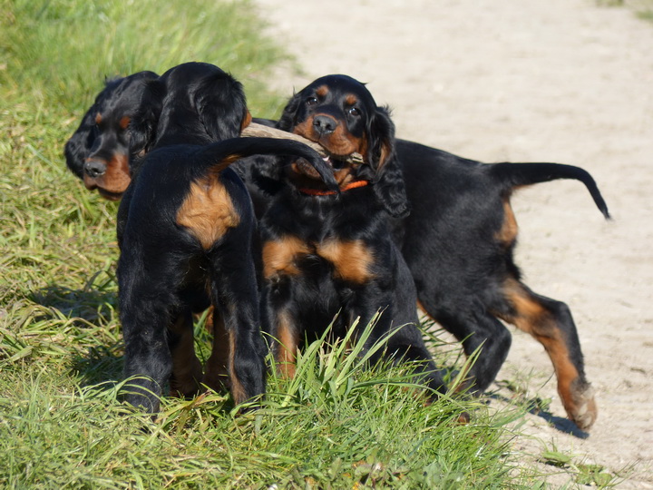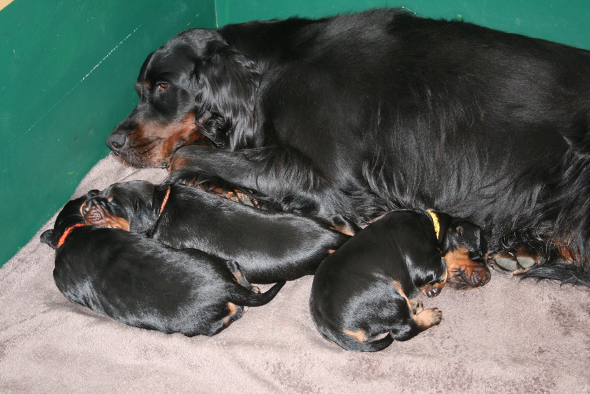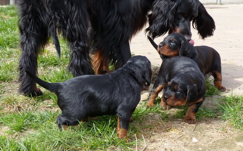 09.04.2016: Gestern sind Ninjan, Nala und Nera 4 Wochen alt geworden. Es war für die Kleinen ohnehin ein aufregender Tag: Fahrt zum Tierarzt, erste Frühimpfung, damit sie auch kleine Ausflüge mit machen dürfen, sie wurden dann auch gechippt. Abends gab es das 2. Mal den 3. Tag Wurmkur. Sie waren mit Mama und mit Nanny Lotte im Welpenauslauf. Sie werden jeden Tag "mehr Setter", spielen und sind zauberhaft interaktiv mit VierbeinErn und Menschen... Hier ein paar Impressionen aus den letzten Tagen: